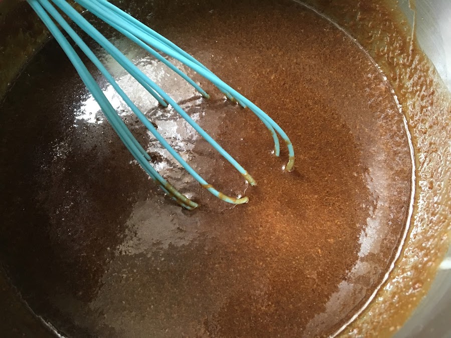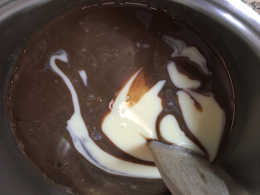 Una vez ha llegado a ebullición lo dejamos medio minuto y paramos el fuego y con unas varillas lo removemos y mezclamos.
