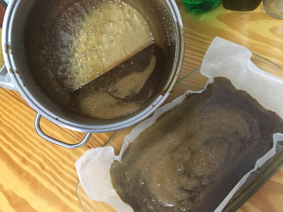 Una vez tenemos todo mezclado e integrado lo pasaremos de la olla a un recipiente para que se vaya enfriando. Podemos pasarlo directamente a botes de cristal donde luego guardaremos nuestro dulce de leche o podemos ponerlo en una fuente forrada con papel vegetal untado con un poco de mantequilla.