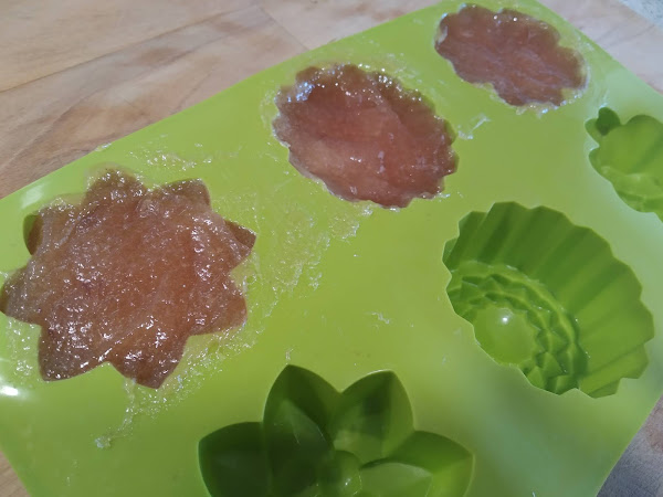 Generalmente se suele presentar en tarrinas cuadradas, pero en ésta ocasión quise darles formas divertidas, en trozos pequeños, casi individuales a fin de alegrar su presentación en la mesa.