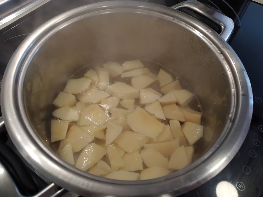 Poner los trozos de membrillo en un cazo a cocer, dejando a fuego medio hasta que estén bien tiernos (pinchar con un tenedor para comprobar que estén blandos).