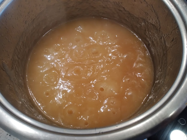 Cuando tome un color dorado oscuro y comience a despegarse de las paredes, retirar del fuego e ir volcando en los recipientes.
