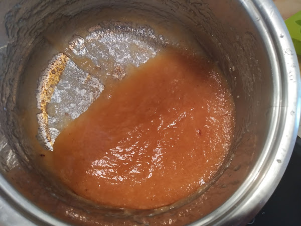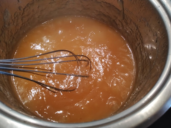 Volver a poner la cazuela en el fuego y dejar cocer a fuego suave removiendo continuamente para que no se pegue al fondo.