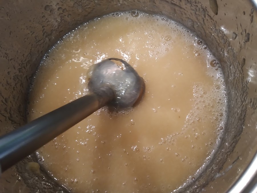 Retirar del fuego, triturar con la batidora de forma que quede un puré muy fino.