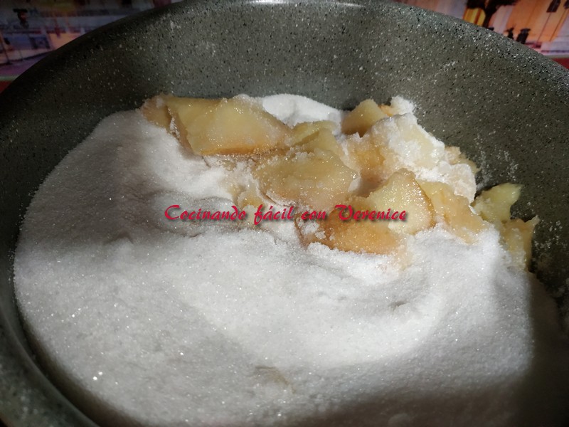 Se le añade el azúcar, mismo peso que el de membrillo.