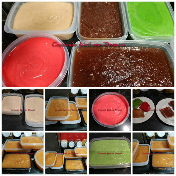 Hacemos lo mismo que con las fresas: lo pasamos por un colador de tela y utilizamos el líquido resultante para mezclar en otro táper de membrillo, con la batidora de mano lo unimos todo.