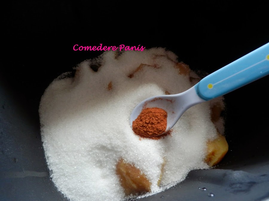Programamos la panificadora en el programa destinado a mermeladas, si eso es la panificadora sirve para más cocas que para hacer pan, este programa tiene una duración de hora y media aproximadamente y la máquina se ocupa de todo así que te puedes poner a ver tu serie favorita sin ningún problema.