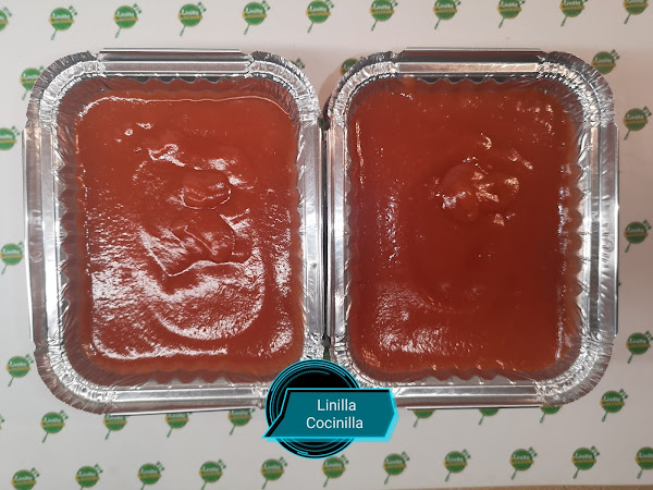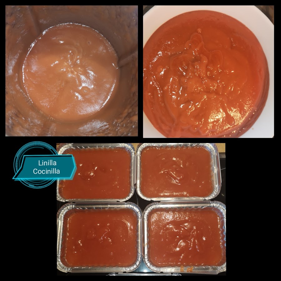 3. Trituramos bien el membrillo con el agua y todo y colocamos en moldes.
