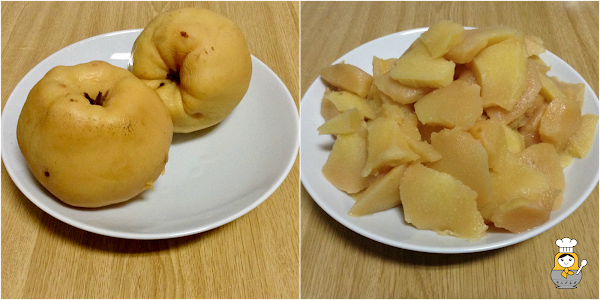 Para obtener un kilo de carne de membrillo, necesitaremos más o menos 1 kg 200 gr de membrillos.