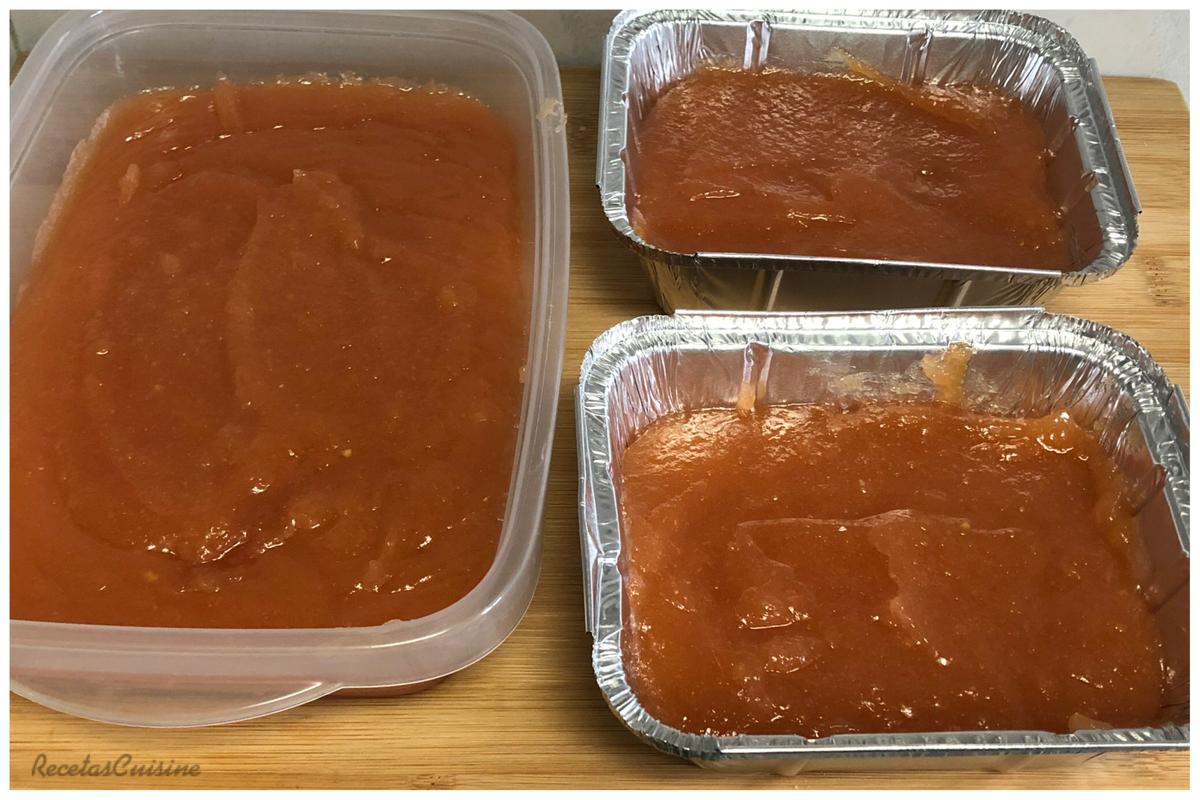 6. Antes de taparlo, ponemos encima una hoja de papel vegetal para que se no se forme moho. Nos durará mucho tiempo, puesto que la cantidad de azúcar que lleva actúa como conservante, y manteniéndolo en la nevera podremos disfrutar de dulce de membrillo durante meses.
