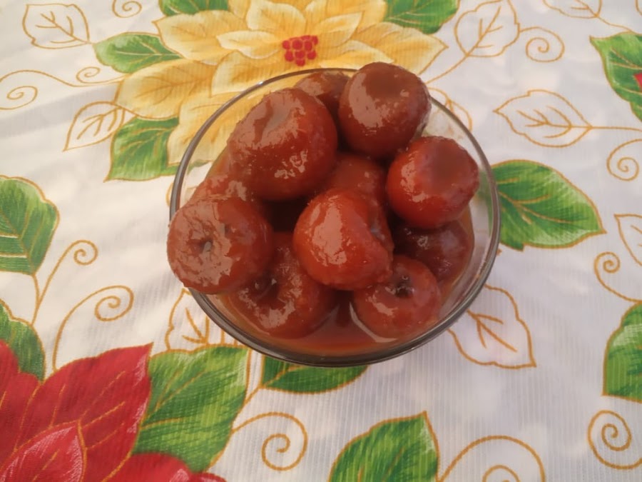Estos frutos tan coloridos se llaman los tejocotes su sabor es un poco insipido al natural, pero preparado en dulce es una manera deliciosa de comerlos como un postre de temporada.