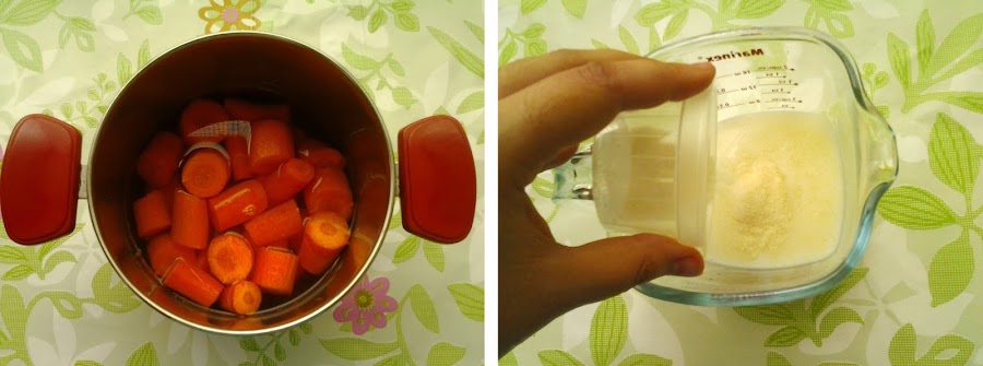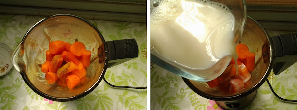 Cuando las zanahorias estén blandas (pincha con un tenedor alguna), retíralas del fuego y ponlas en un vaso grande para batirlas.