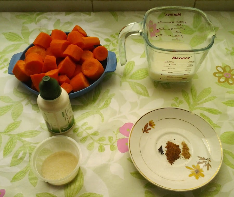 El dulce de zanahoria está hecho prácticamente de eso, zanahorias, por lo que no contiene gluten, ni lactosa, ni huevo, ni maíz. Y además, yo lo he preparado sin azúcar, por lo que es prácticamente apto para todos los públicos.