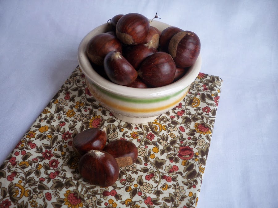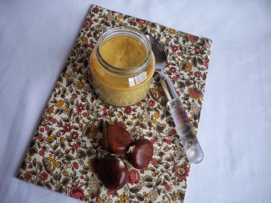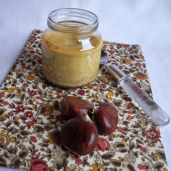 Estamos en época de castañas y me vine de casa de mi suegro con una bolsa de ellas. Hace unos meses mi marido probó un flan de castañas en un restaurante, así que tenía claro cual era la primera receta que quería probar.