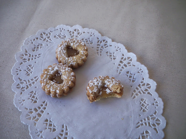 Las quitamos del horno, se dejan enfriar en una rejilla y una vez frias se untan con el lemon curd. Se tapa con la galleta con el corazón. Para decorar se espolvorea con azúcar glass aunque no es necesario, están riquisimas de igual manera.