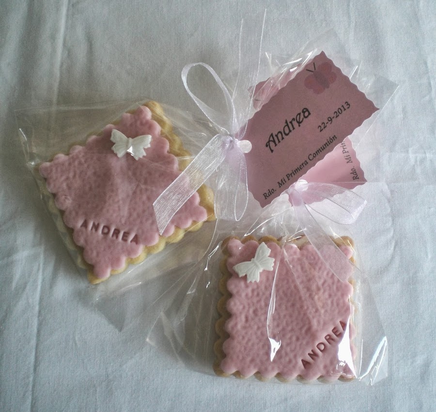 Ayer, domingo, asitimos a una Comunión y como parte de nuestro regalo llevé estas galletas decoradas para regalar a los invitados.