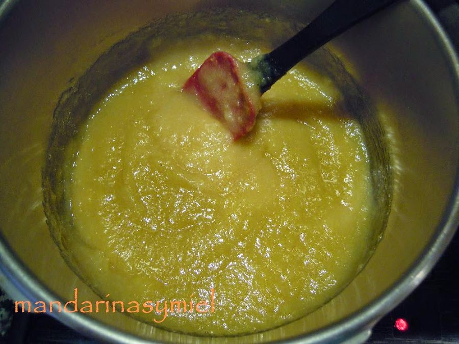 La carne de membrillo está lista cuando al remover, la cuchara se queda plantada. No dejes que se haga muy oscuro.