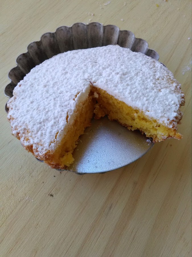Una vez se haya enfriado, podemos decorarla con azúcar glasé espolvoreada sobre la tarta.