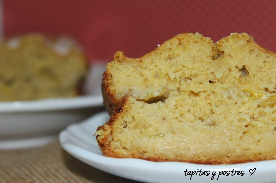 Este bizcocho que podéis ver en mi blog Tapitas y postres está elaborado con copos de avena, manzana, plátano, queso desnatado, edulcorante, huevos y un sobre de preparado para flan sin azúcar. Se trata de triturar todos los elementos excepto la fruta y colocar en un molde una capa de masa y una capa de fruta laminada alternas. Luego hornearemos y tendremos como resultado un bizcocho bajo en calorías, sano, ligero, saludable y sobre todo riquísimo. No dejes de ver la receta completa en el blog.