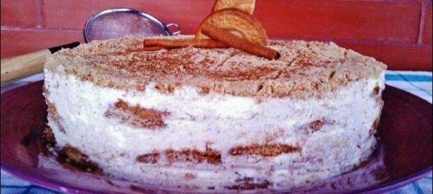 Desde la página Cocina familiar nos llega esta tarta fría, ideal para tomar en verano. Prepararemos unas natillas ligeras y bañaremos en ella unas galletas que iremos poniendo en un molde. Haremos una crema de queso, azúcar y canela y alternaremos capas de galletas bañadas con esta crema de queso hasta rellenar el molde. Por encima le pondremos unas migas de galletas