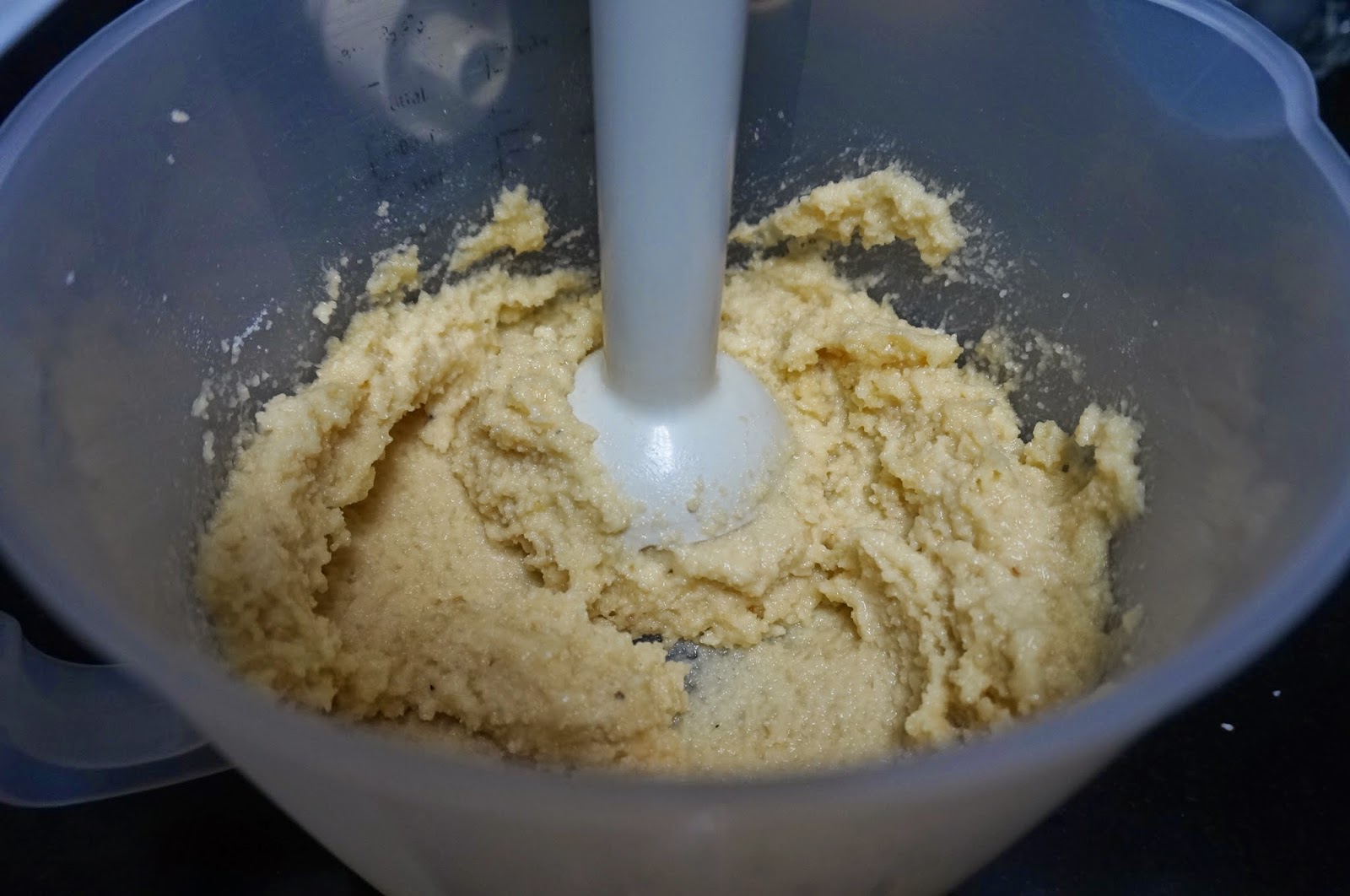 Lo mezclaremos todo bien. Yo lo hice con las cuchillas para que se mezclara bien el azúcar y la almendra y quede bien molido.
