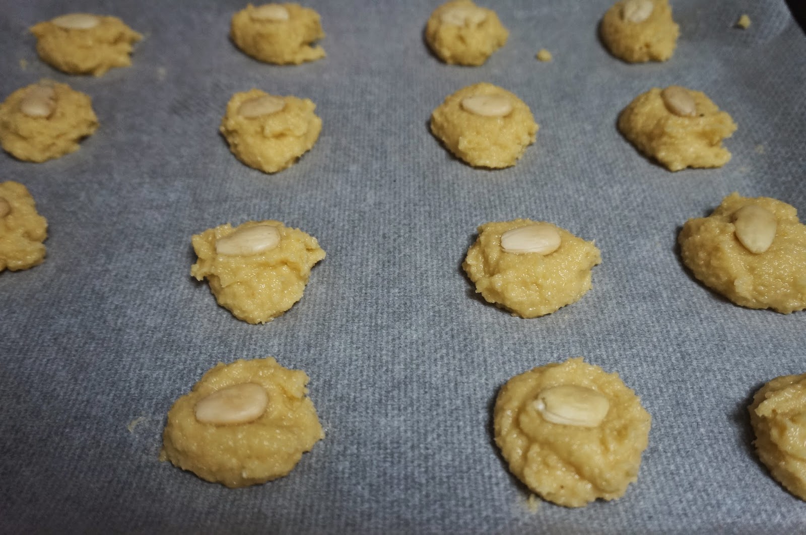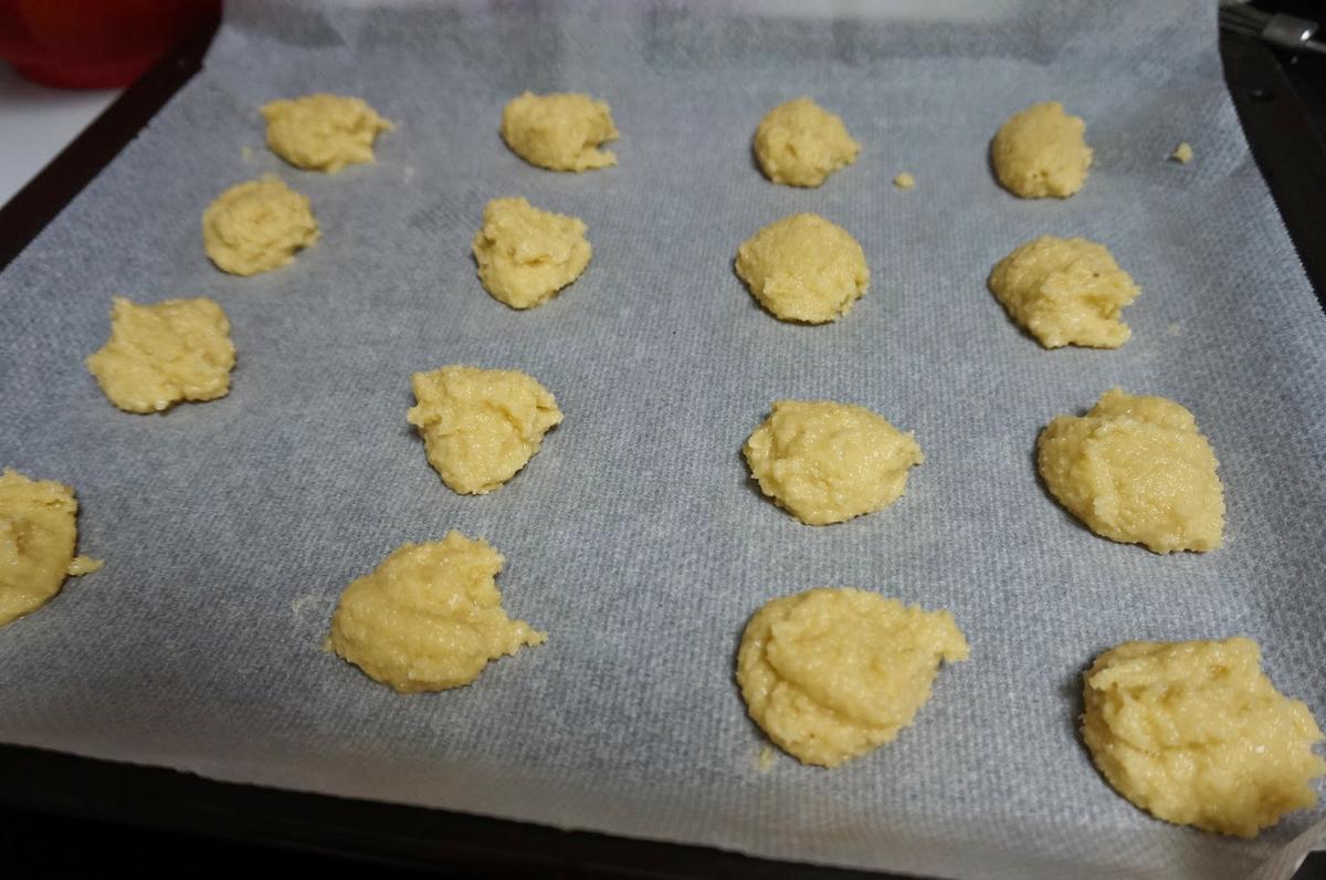 Tomaremos porciones con la ayuda de una cuchara y las pondremos en una placa de horno cubierta de papel de hornear.
