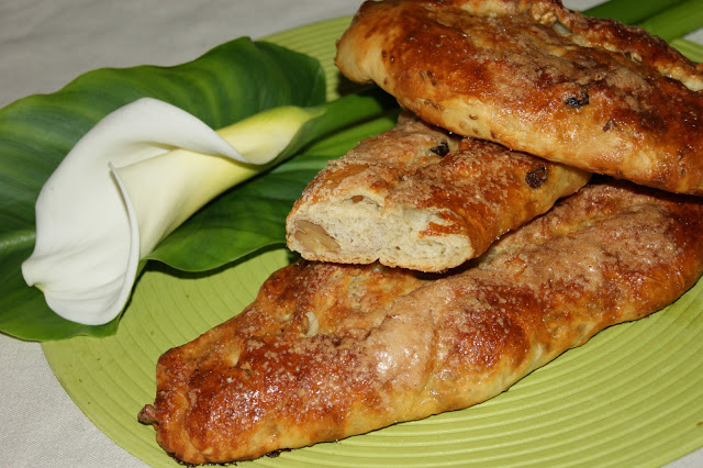 Bollos nochebuenos: estos bollos típicos de Granada tienen un nombre que no descubrí hasta que busqué la receta para hacerla ya hace años. Son unos bollos de aceite rellenos de pasas y nueces con una cobertura de azúcar horneado.