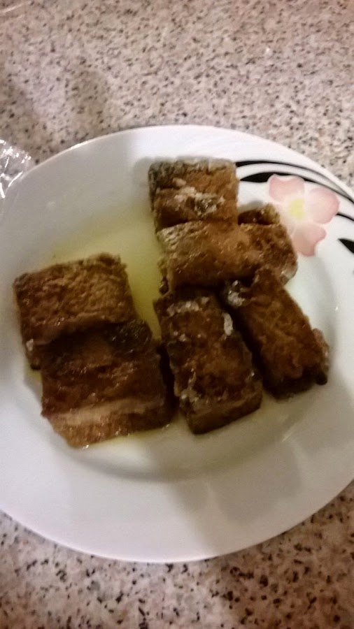 Y no puede faltar un poquito de leche frita, en esta ocasión es de chocolate... :) se suele tomar también como postre: