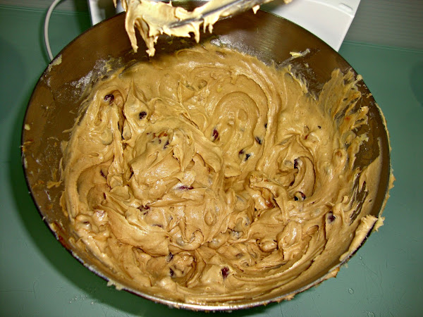 Vamos añadiendo la harina poco a poco para que no se formen grumos y finalmente añadimos la mezcla de ingredientes de frutas que teníamos reservados.