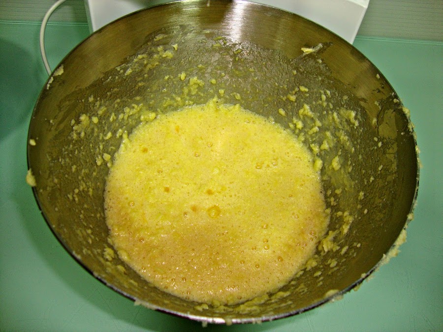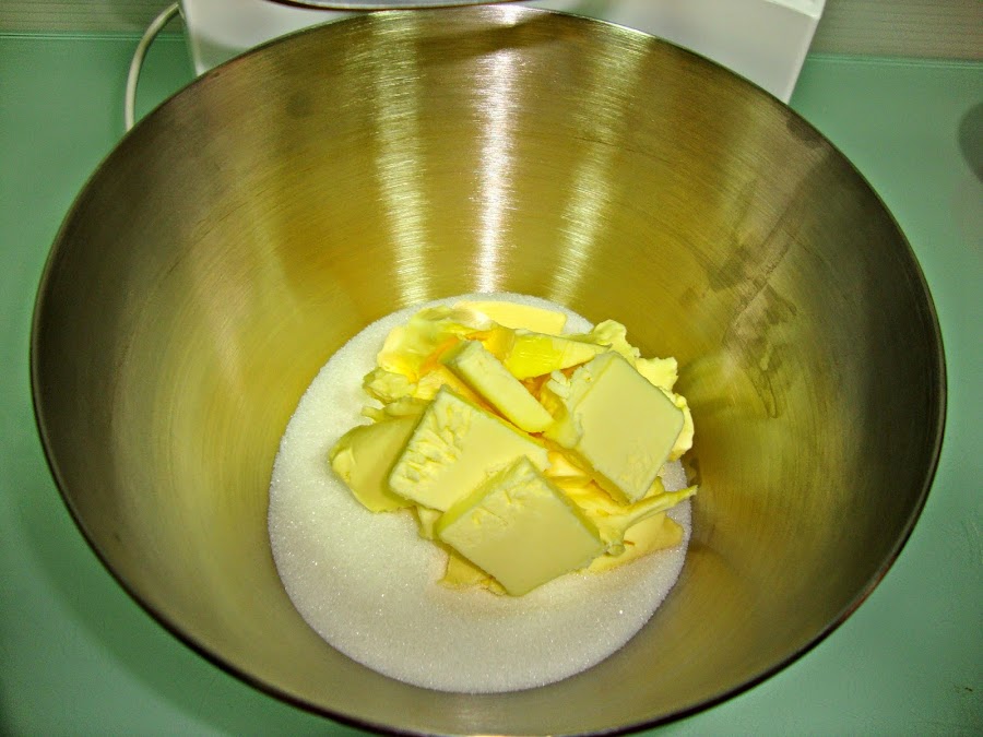 En un bol ponemos la mantequilla con el azúcar y batimos hasta que el azúcar esté integrada y la mezcla comience a blanquear.