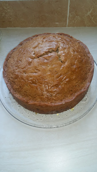 Hornear a 350°F - 180°C por 1h-15min, hasta que un palillo insertado en el centro salga limpio.