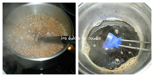 Hervir una taza y media de azúcar moreno con 200 ml de agua, reservar.