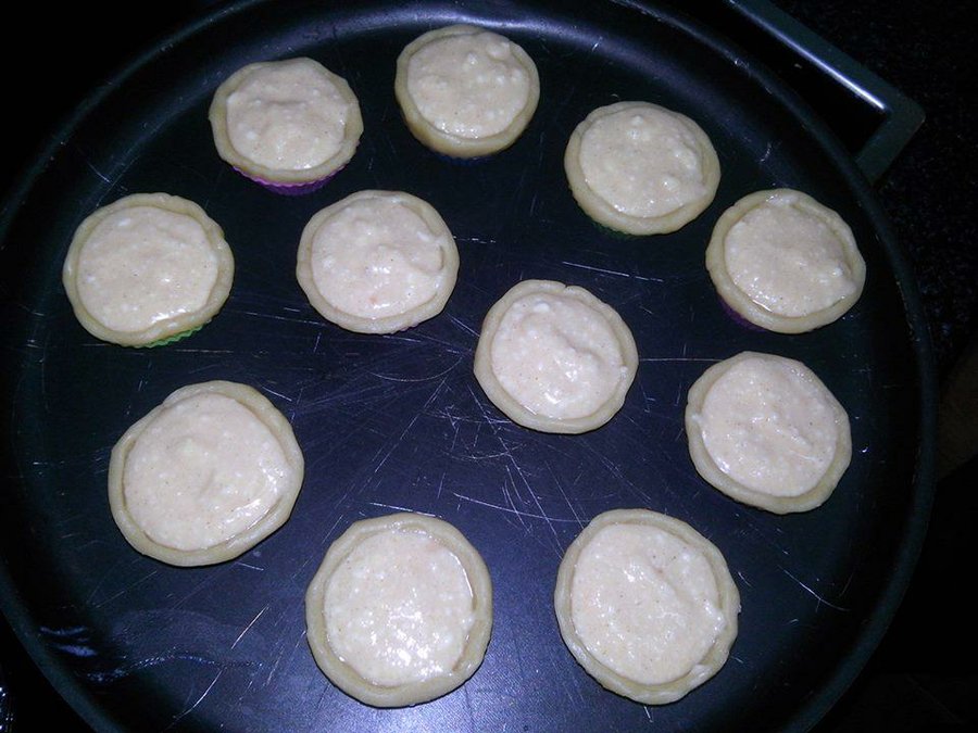 Mezclamos la harina, la sal y el azúcar, hacemos trocitos con la mantequilla y la unimos.