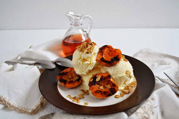 No se preocupen si no tienen un grill a la mano, pueden usar un sartén o una plancha para asar, lo único diferente será que la parrilla no quedará marcada en los duraznos. El look del plato cambiará un poco pero su sabor será el mismo.