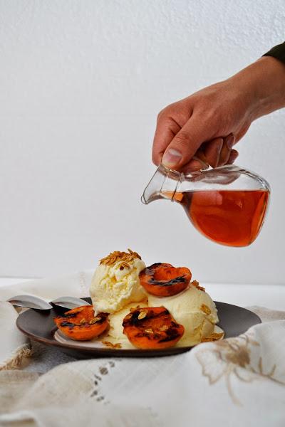 Pensarán que estoy obsesionada con el helado, y bueno sí, me gusta mucho, pero es que además lo he escogido para el post porque junto a los duraznos luce muy provocativo. Sin embargo, también podemos reemplazarlo por un poco de crema chantilli, o yogurt griego para un platillo más saludable, o queso crema, o lo que se les ocurra, las opciones son infinitas!