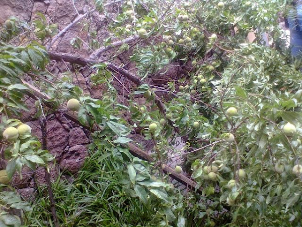 Son muy valiosos porque ya es difícil conseguirlos, tiene varios años que ya ni en las fruterías se consiguen, ni por pedido, y yo estaba feliz de tanta fruta que iba a obtener. Hasta aquél día que escuché ese crujir, en fin, yo no sabía cómo hacerle para salvar toda esa enorme cantidad de frutos, así es que al paso de los días y el ver que las hojas no se caían ni se deterioraban los duraznos, pues decidí dejarlo así, sin mover, y poco a poco comenzó a tirar los duraznos, a decir verdad todavía están un poco verdes, cada día va mejorando su color cada fruto, considero que se ha tardado más de lo normal, pero todos los días tenemos cuidado de recoger los que están en el suelo.