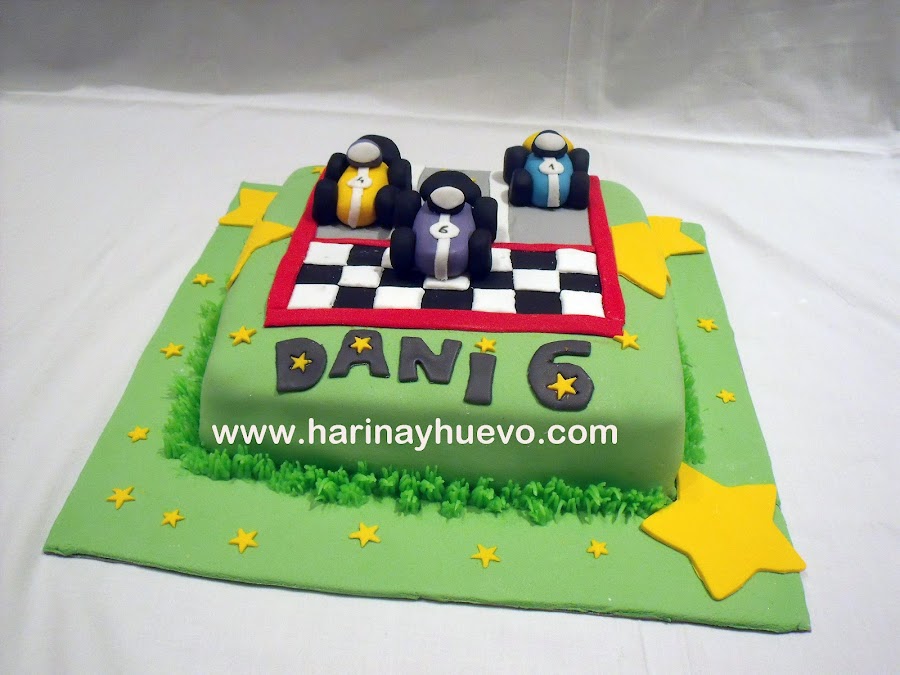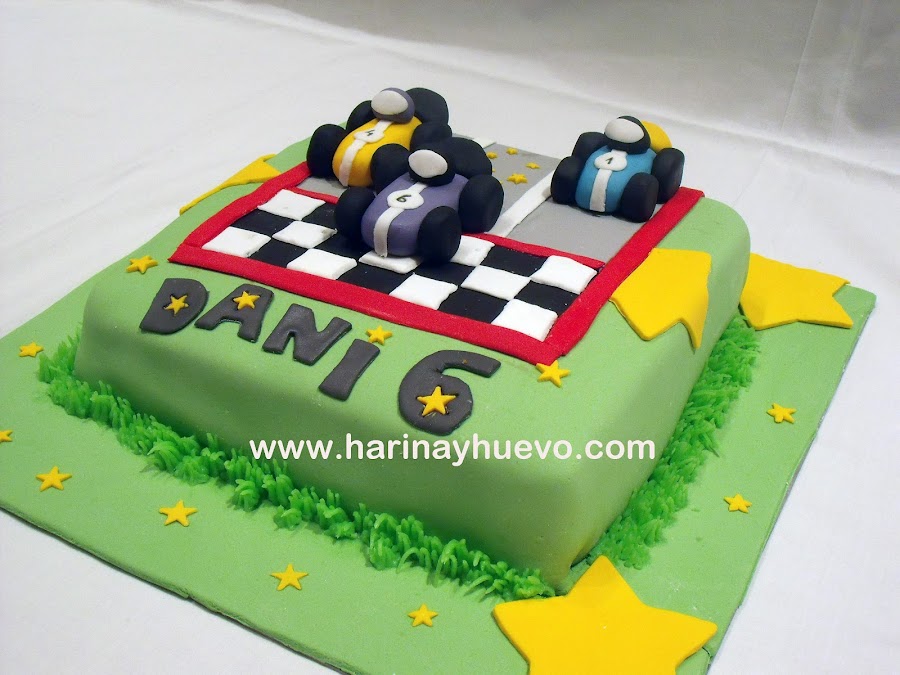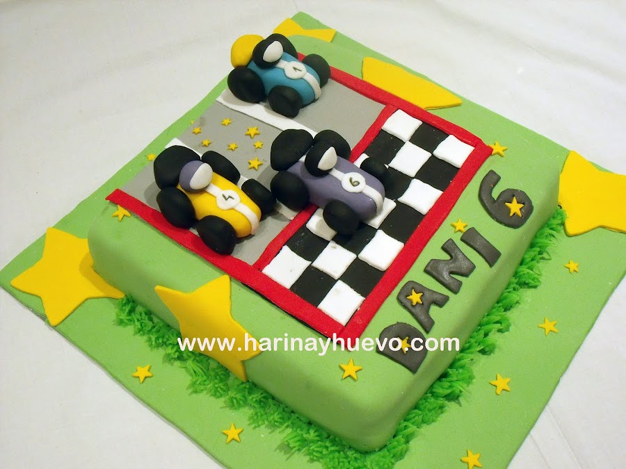 Con esta tarta me pasó todo lo contrario, me mandaron una foto de otra tarta que habían visto y me dijeron: "Quiero esta, pero con el primer coche en morado y que no se te olvide las estrellitas que van detrás del coche" Por mucho que intenté convencerla para cambiar algunas cosas no quiso, ¡si hasta el nombre es el mismo! Esto por casualidad, no es que le diera la tarta a su hijo con el nombre de otro.