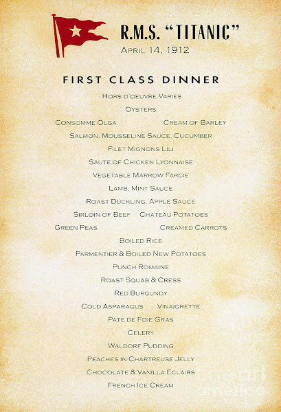 Hoy 15 de abril se conmemora el hundimiento del Titanic y en el #Diade vamos a recordarlo haciendo una receta de cualquiera de los 3 menús que se sirvieron esa noche. Había un menú para la primera clase, otro para los de segunda y un tercero para los pasajeros de tercera clase. Ninguno de los tres es poca cosa y en todos hay platos de "primera", muy muy ricos.