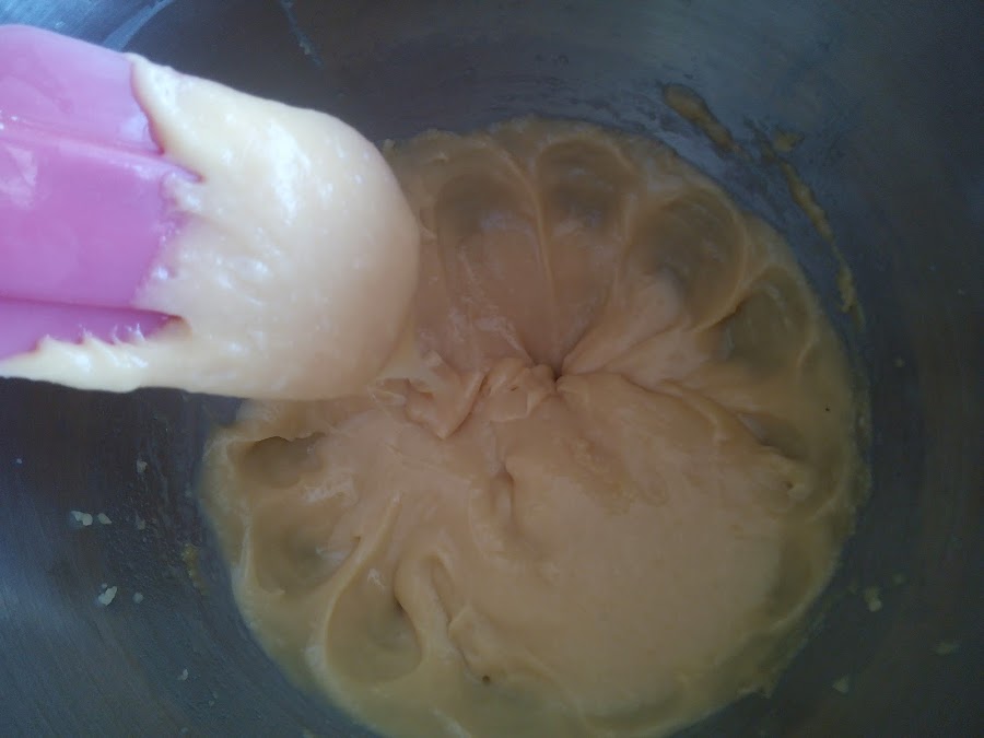 Cuando ya tenga una consistencia espesa y cremosa a la vez, colocamos la mezcla en una manga pastelera para poder manejarla mejor.
