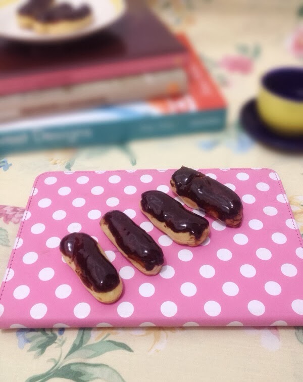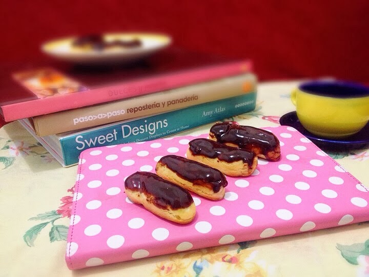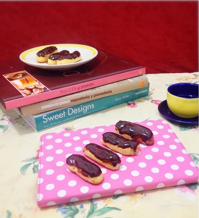 Hola de nuevo, espero que hayan tenido una estupenda semana y que hayan descansado este domingo. Para hoy les traigo otra receta sencillita y super rica, son unos eclairs rellenos con crema de naranja bañados con una salsa de chocolate.Los eclairs se realizan con una masa de doble cocción conocida como masa bomba o pâte à choux, esta se caracteriza por ser hueca en el centro, lo que permite que las figuras se puedan rellenar, pueden usarse rellenos tanto como dulces y salados; yo hoy les propongo un relleno dulce con sabor a naranja. También he decidido hacerlos mini, pero si ustedes quieren pueden hacerlos del tamaño deseado.Espero les guste y vamos con los ingredientes y el procedimiento