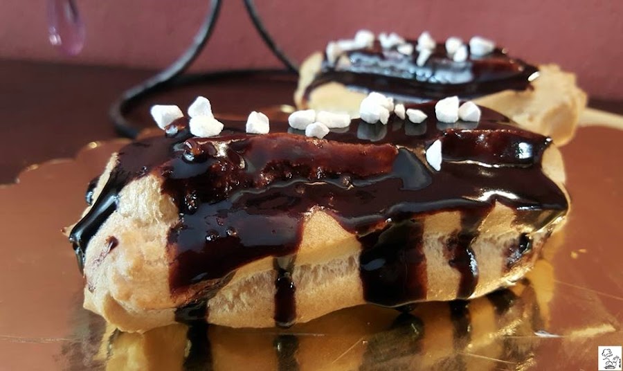 ECLAIRS RELLENOS DE CREMA PASTELERA CON GLASEADO DE CHOCOLATE