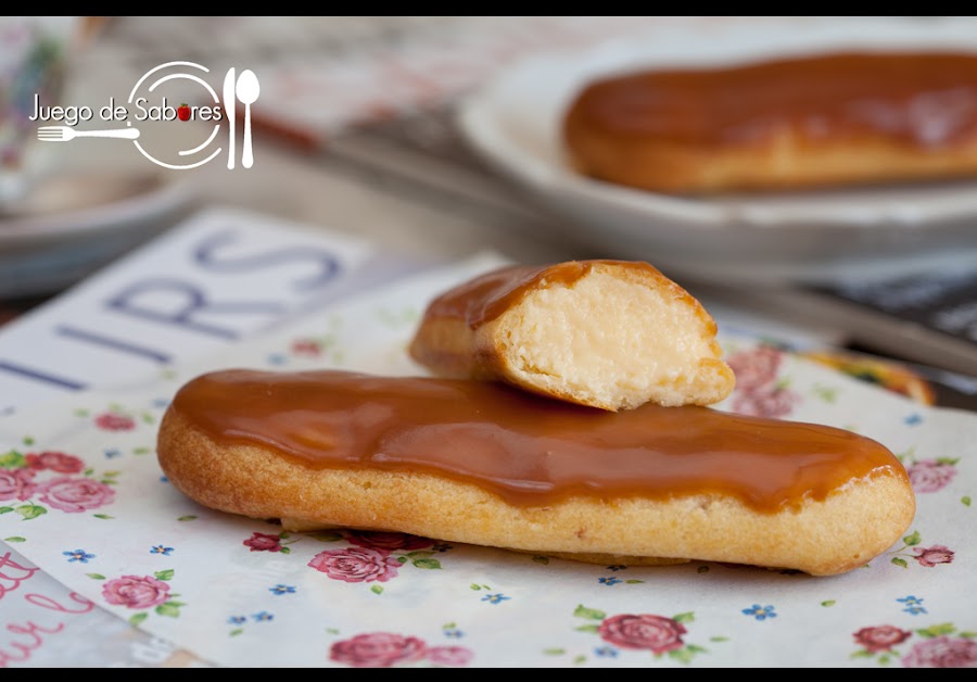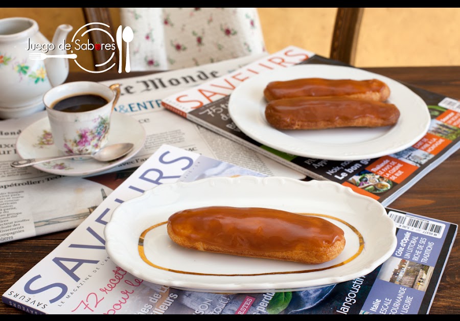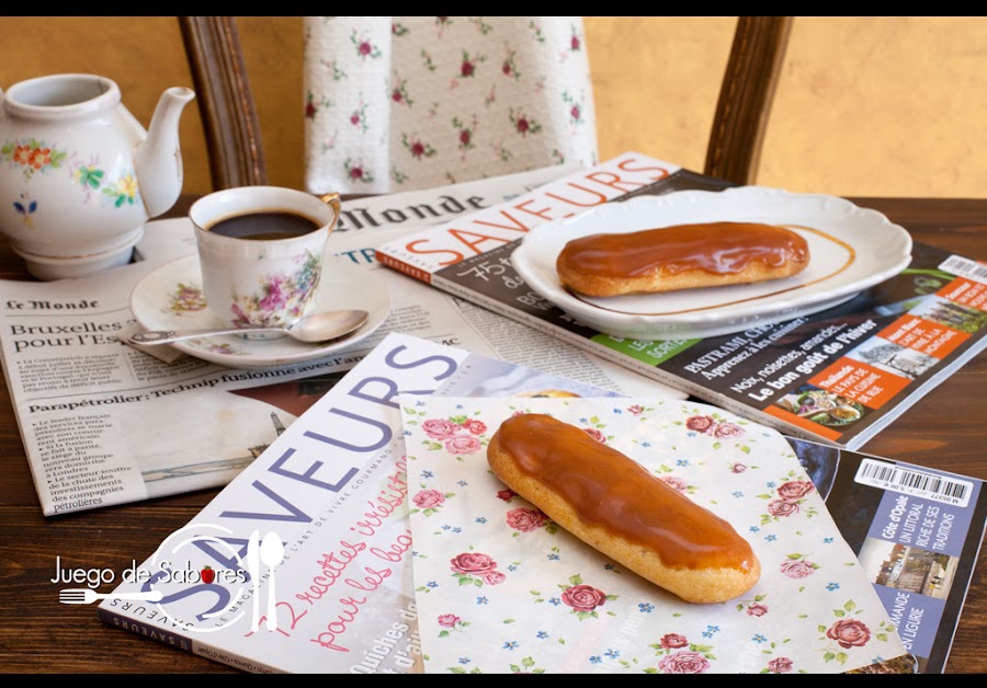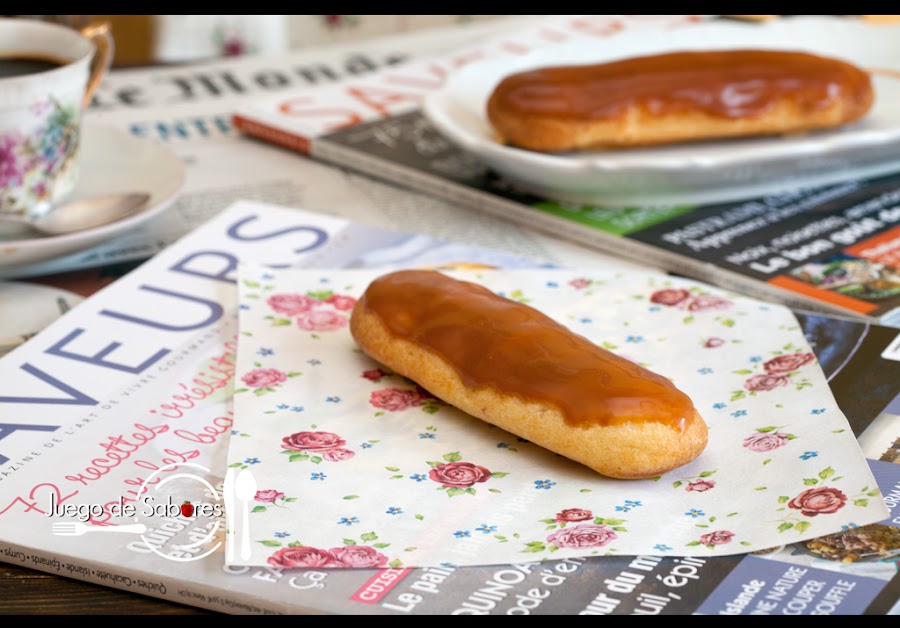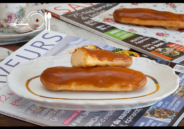 Nosotras hemos utilizado el glaseado de "Crème de caramel au beurre salé" que compramos en Francia porque da a los éclairs un acabado fantástico pero, si no lo encontráis, podéis hacer cualquier otro tipo de glaseado, de limón, o de chocolate, por ejemplo.