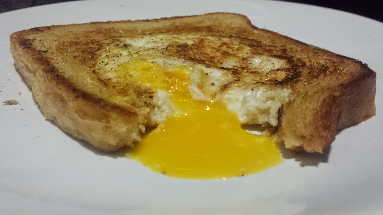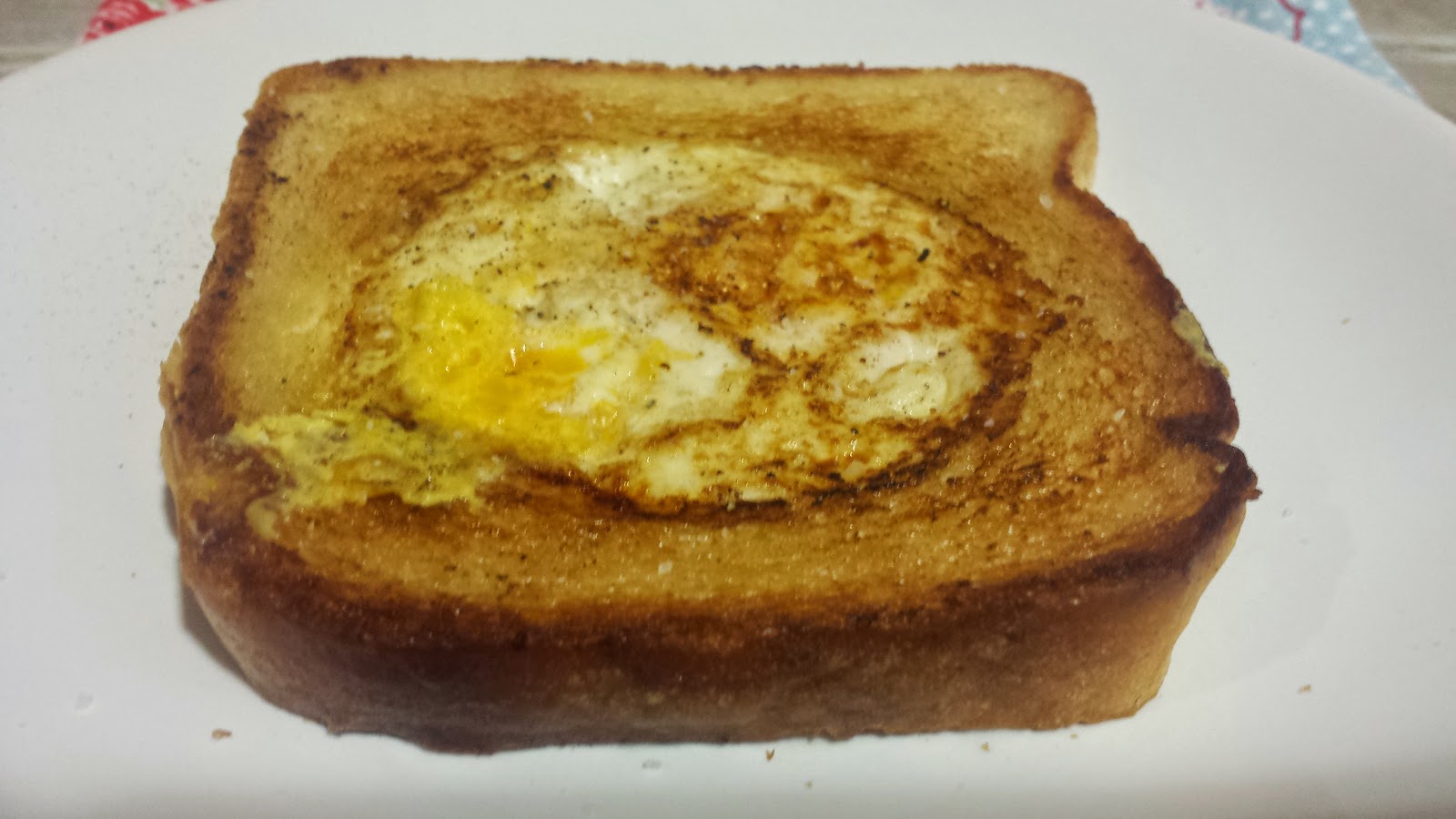 4. Sacamos de la sartén y servimos salpimentándolo al gusto. Yo dejé la yema poco hecha, pero podéis dejarla más tiempo si lo que queréis es comer la tostada con la mano y no pringaros demasiado.