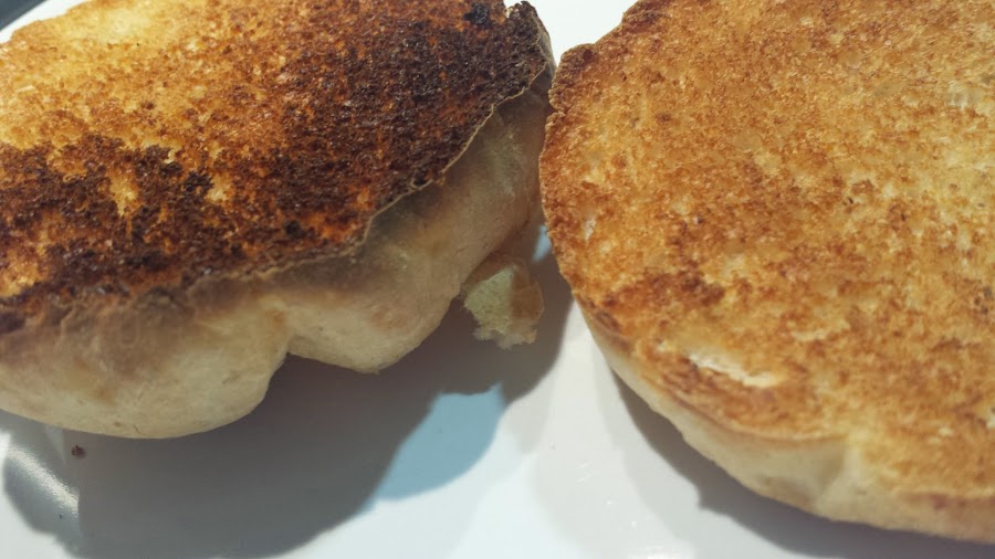 English MuffinsEn un principio yo pensé en el pan de mollete, porque me encanta y porque le daría un toque muy andaluz a la receta, pero no lo encontré, así que lo sustituí por estos panecillos que ví en Alcampo y que dieron buen resultado: