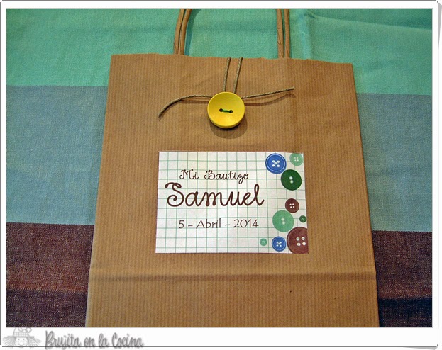 Pero el resultado creo que ha merecido la pena. Los sellos con botoncitos (me ayudo mi prima a hacerlos porque eran un montón) y un body con la S de Samuel.