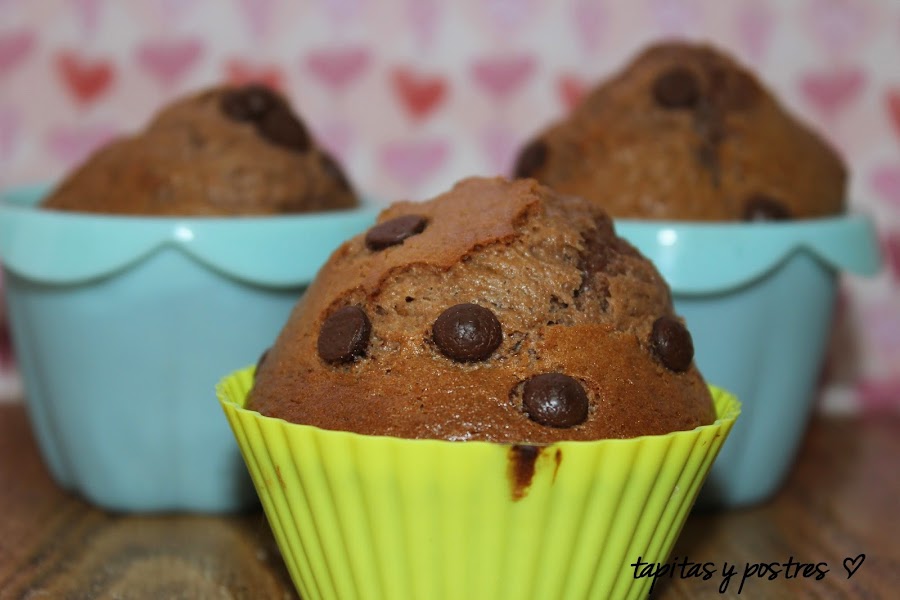 En mi blog Tapitas y Postres, tenemos estos muffins con pepitas de chocolate. Un dulce para los golosos de la casa.