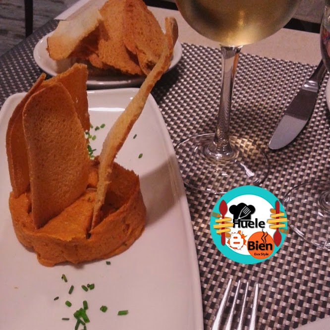 Para abrir boca pedimos; Pasta de txangurro y langostinos: un paté de buey de mar con langostinos, servido con unas tostadas de pan.