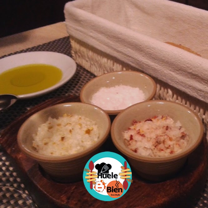 Mientras esperamos lo que habíamos pedido de la carta, disfrutamos de las sales condimentadas con pimientas, jengibre y aceite de oliva...