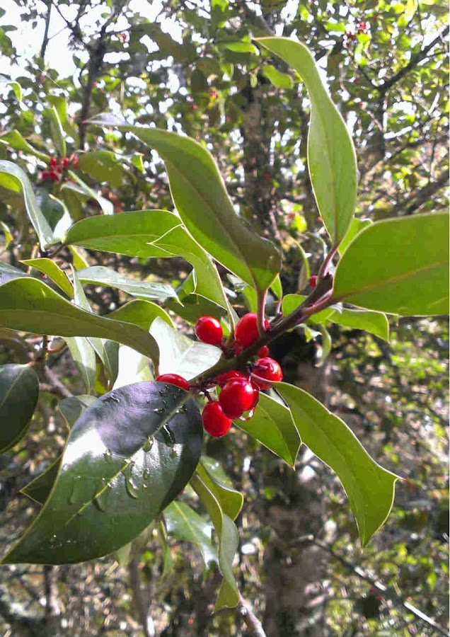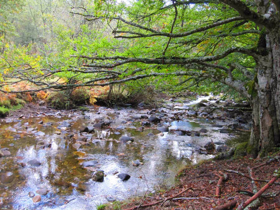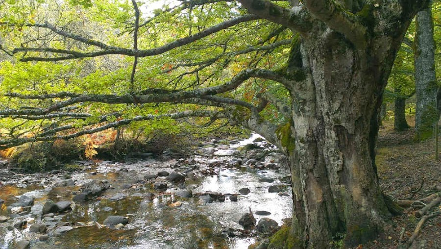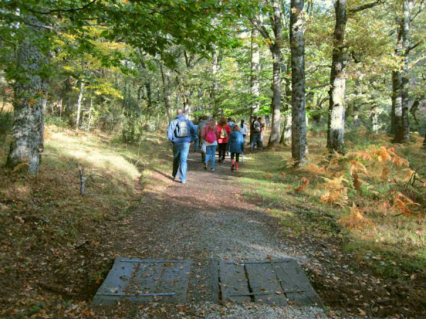 La verdad es que la ruta se hace muy amena porque la guía, que era encantadora, nos contó un montón de cosas interesantes, de hecho en más de una ocasión nos dejó con la boca abierta, pero prefiero no desvelar nada por si tenéis la ocasión de ir a visitarlo. Esta excursión además me pareció muy recomendable para los niños pues en nuestro grupo iban unos cuantos y se lo pasaron genial con las explicaciones y con las cosas que vimos: varios tipos de setas; un gracioso sapo que nadaba a sus anchas por el río; los acebos repleto de bayas rojas; la zona donde estaban las antiguas carboneras y la graciosa explicación de los nidos de lagartijas; varios.. muchos árboles centenarios de curiosas formas.... En fin, un montón de cosas interesantísimas.
