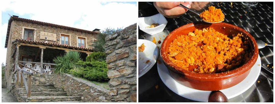Una vez en el pueblo, sobre las 12 h., pudimos degustar unas migas de pastor en la terraza, de preciosas vistas, del mismo sitio donde por la mañana temprano nos tomamos el café.. ¡¡qué bien nos sentaron!!