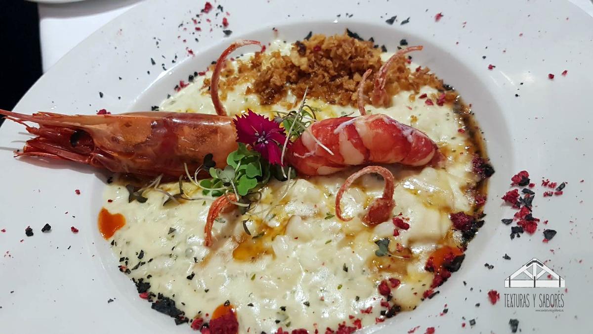 Huevos rotos el Marquesito. Después viene el plato principal y una de las opciones era el risotto a las tres cocciones, este plato se hace a la vista del cliente.